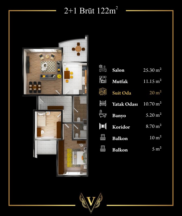 2+1 BRÜT 122 METREKARE