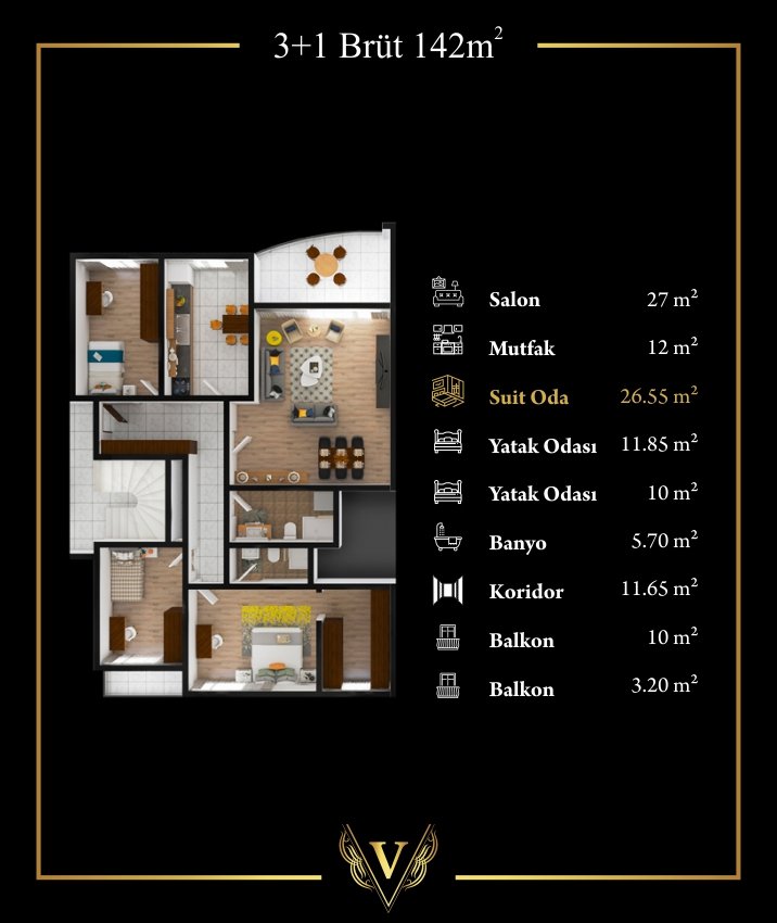 3+1 BRÜT 142 METREKARE