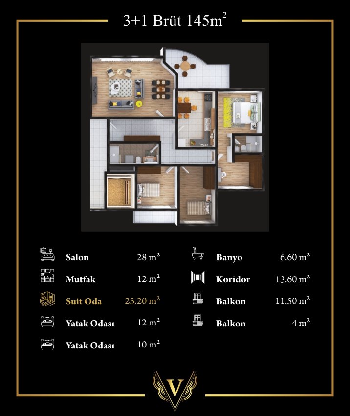 3+1 BRÜT 145 METREKARE