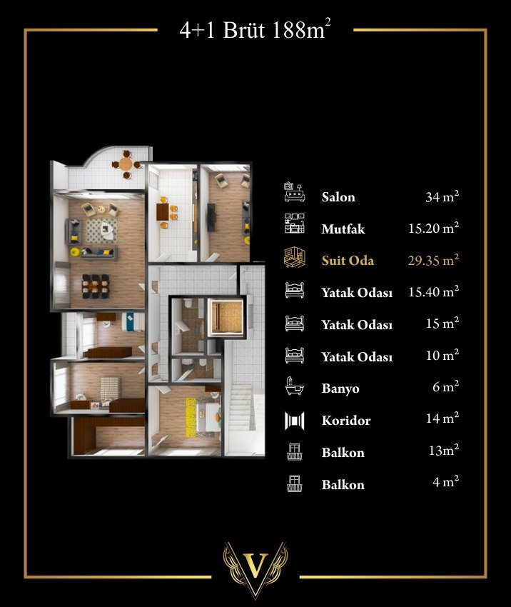 4+1 BRÜT 188 METREKARE